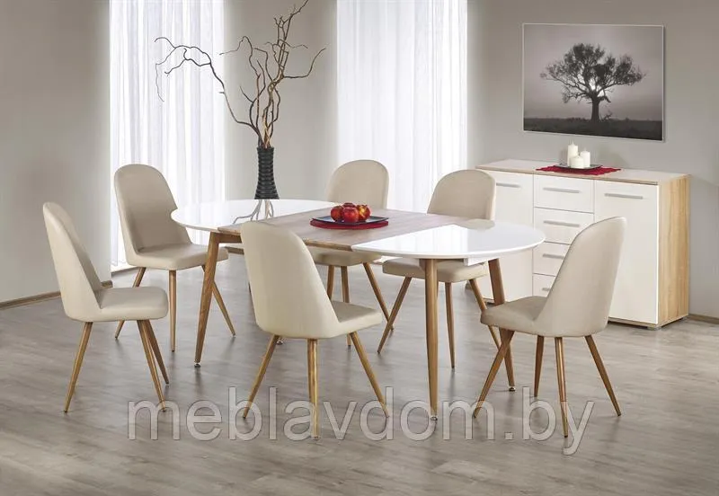 Стол обеденный HALMAR EDWARD белый/дуб медовый 120-200/100